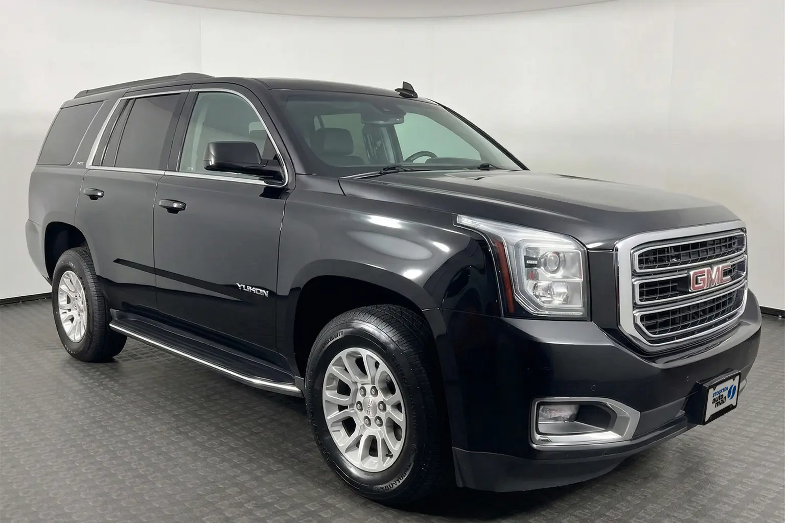 2019 GMC Yukon SLT featuring a Clean CARFAX and finished in Onyx Black over Jet Black Perforated Leather. This 4WD SUV is powered by a robust EcoTec3 5.3L V8 engine paired with a 6-Speed Automatic transmission. It comes fully equipped with Third Row Seats, a Power Tilt-Sliding Sunroof, and a Tow Package for maximum utility.
